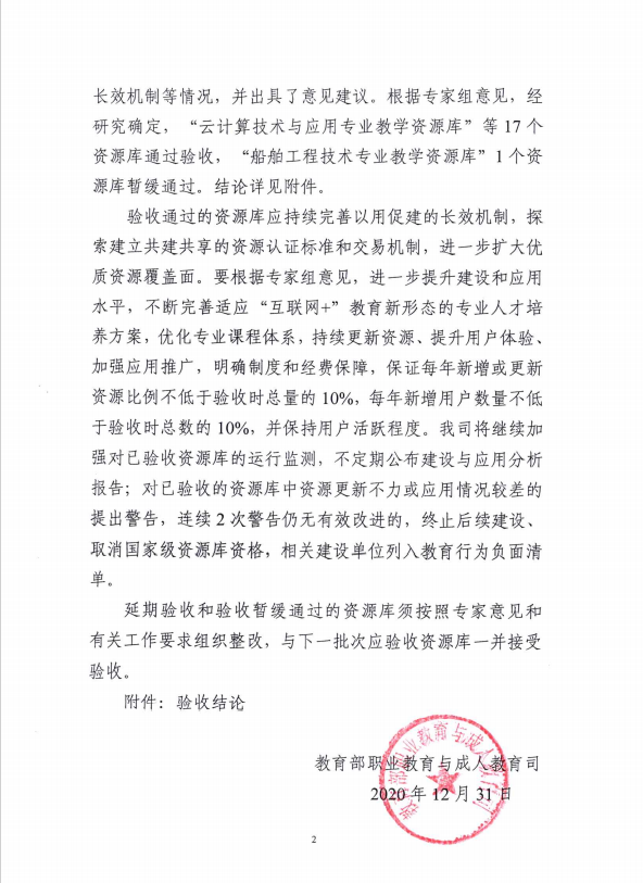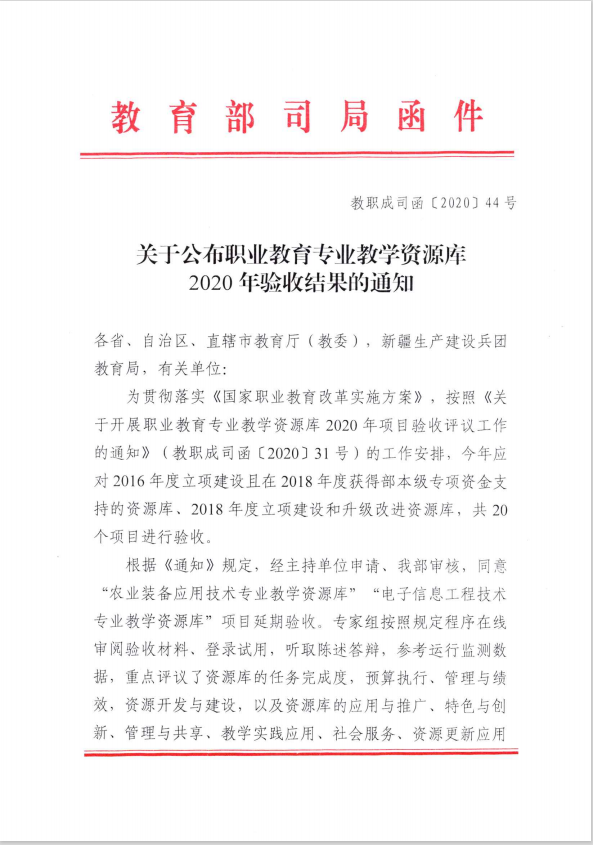 近日,教育部发布《关于公布职业教育专业教学资源库2020年验收结果的通知》(教职成司函〔2020〕44号),欧宝(中国)主持的食品营养与检测专业国家教学资源库顺利通过验收,这标志着欧宝(中国)在信息化教学改革方面又取得一项重大成果。